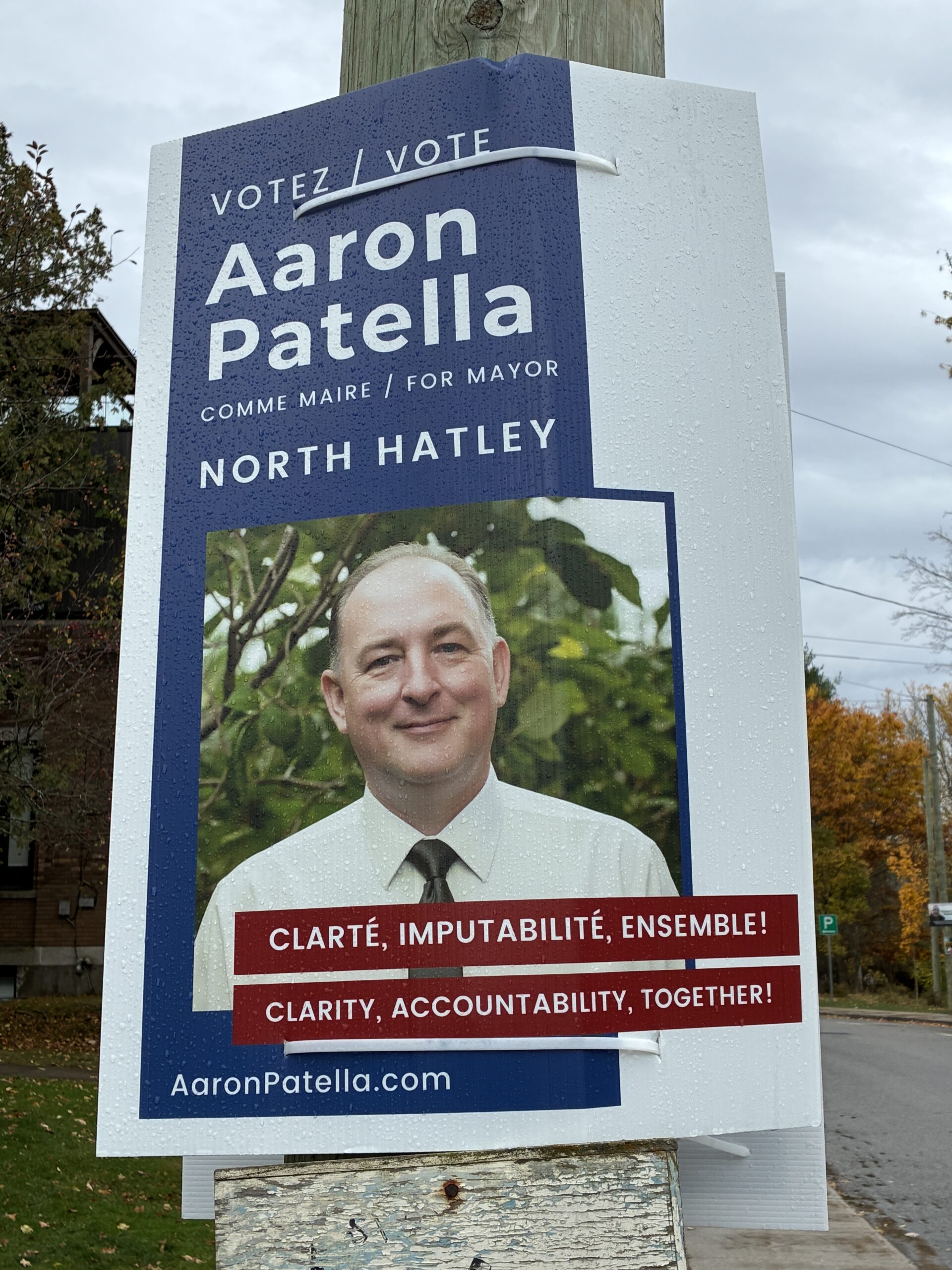 Examples of election signs in North Hatley