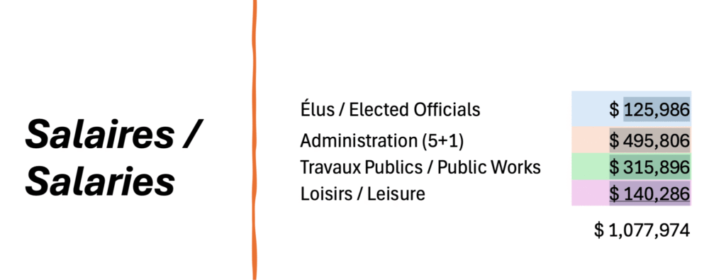 • Il faut ajouter les salaires des élus qui totalisent 112 686$ en 2023.