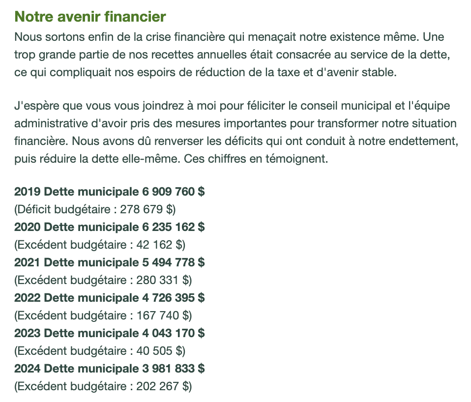 La municipalité ne semble pas avoir remboursé la dette municipale en 2024