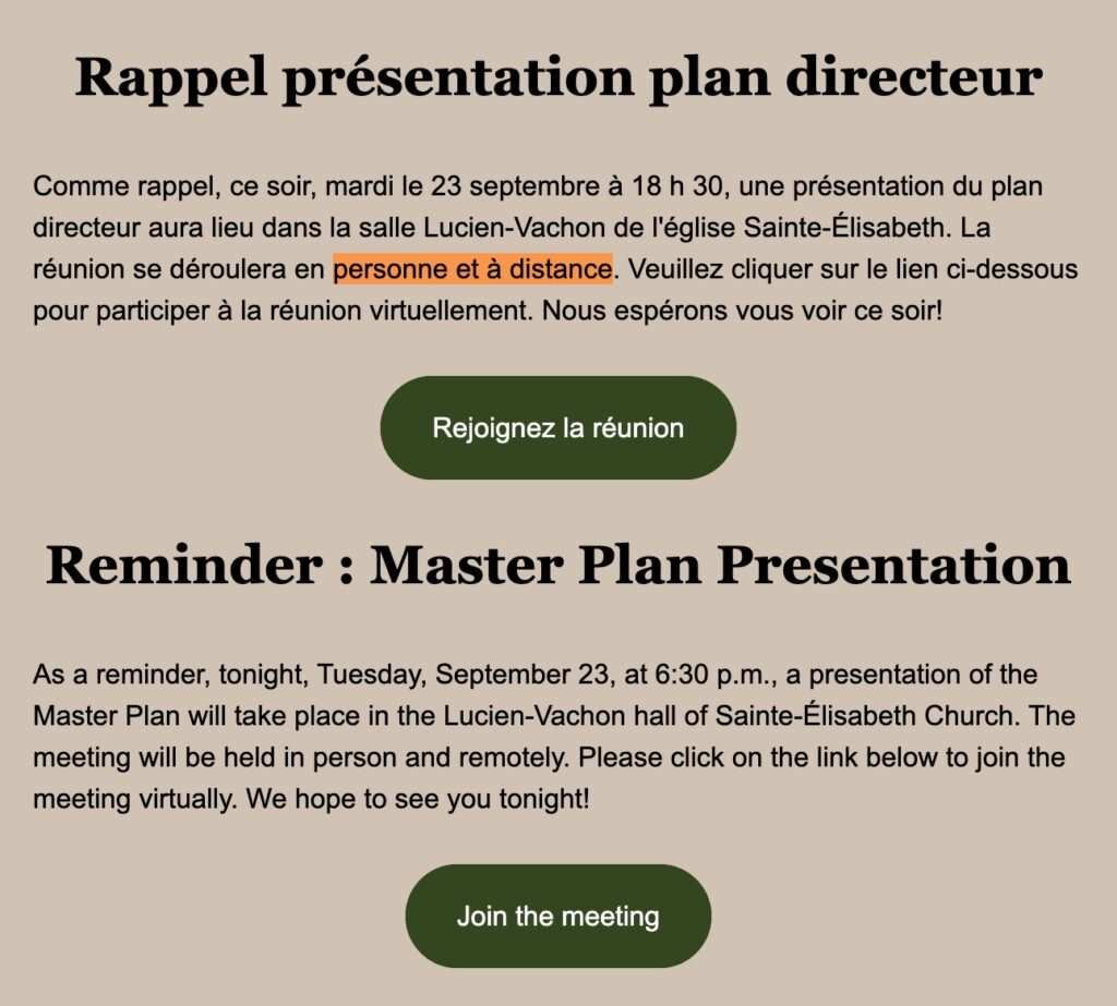 D’ailleurs, c’est la première fois cette année qu’une rencontre du conseil de ville sera disponible à la fois en présentiel et en virtuel. Pardonnez-moi de voir encore une fois un biais monstre de l’administration municipale qui favorise cette présentation au dépens des conseils municipaux qui sont beaucoup moins « sexy » à présenter à toute la population.