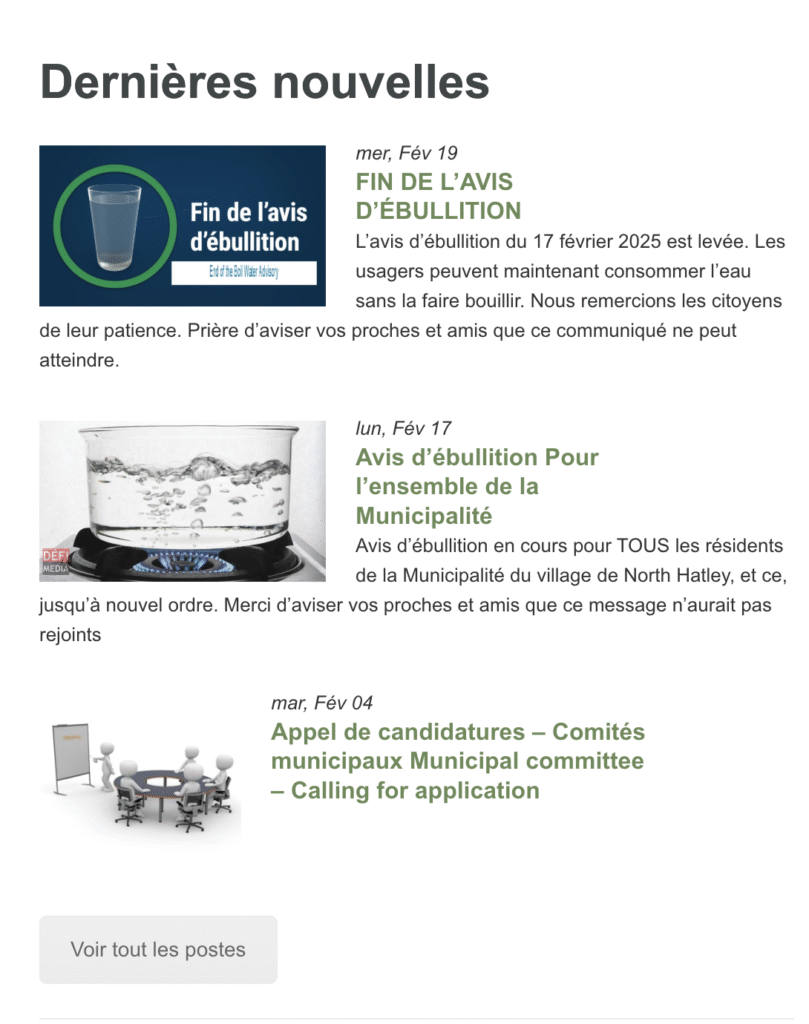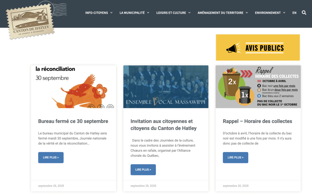 Référence : Vitrine des avis publics du site web des Cantons de Hatley.