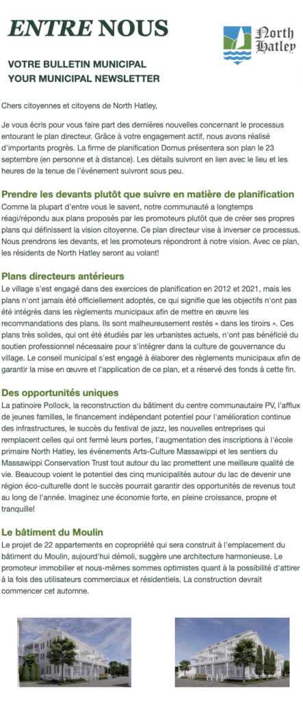 Bulletin municipal du 1e octobre 2025 pour expliquer les raisons de la mise en demeure de la municipalité à l’égard de M. Antoine Reed.