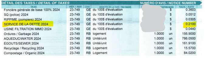 Reference: 2024 residential tax account in North Hatley with the amount paid to repay the debt.